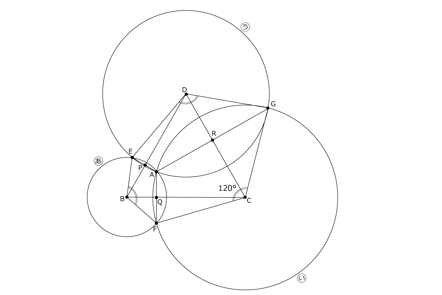 図のように,点B,C,Dを中心とする3つの円あ,い,うが…