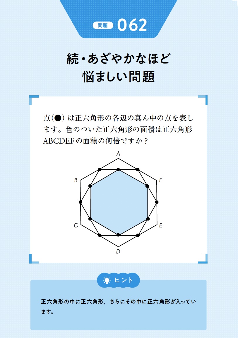 一つ内側の正六角形になるごとに面積は3/4倍になります。