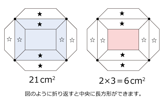 八角形ABCDEFGHは内角がすべて135度で,AB=CD=EF=GH,BC=FG=2cm,DE=AH=3cmです。点M,N,O,Pは各辺の中点で,四角形MNOPの面積は21cm2です。八角形ABCDEFGHの面積は何cm2ですか。