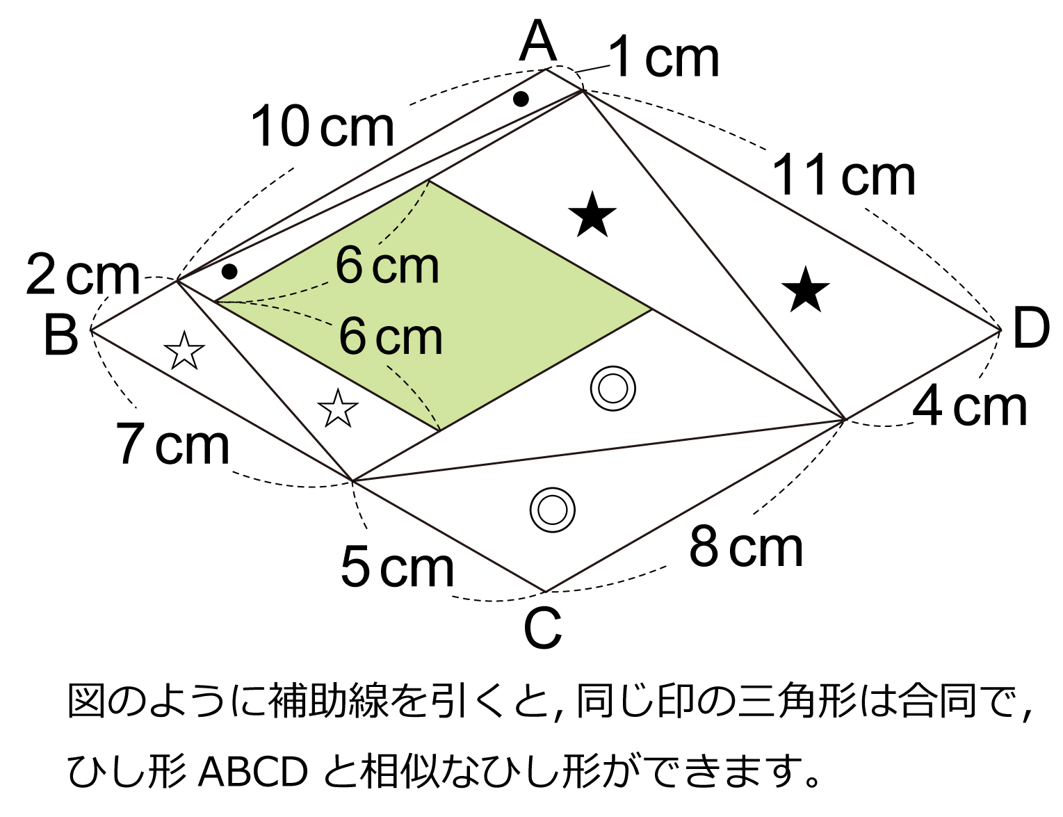 ひし形ABCDの面積が120cm2のとき,色のついた部分の面積は何cm2ですか。