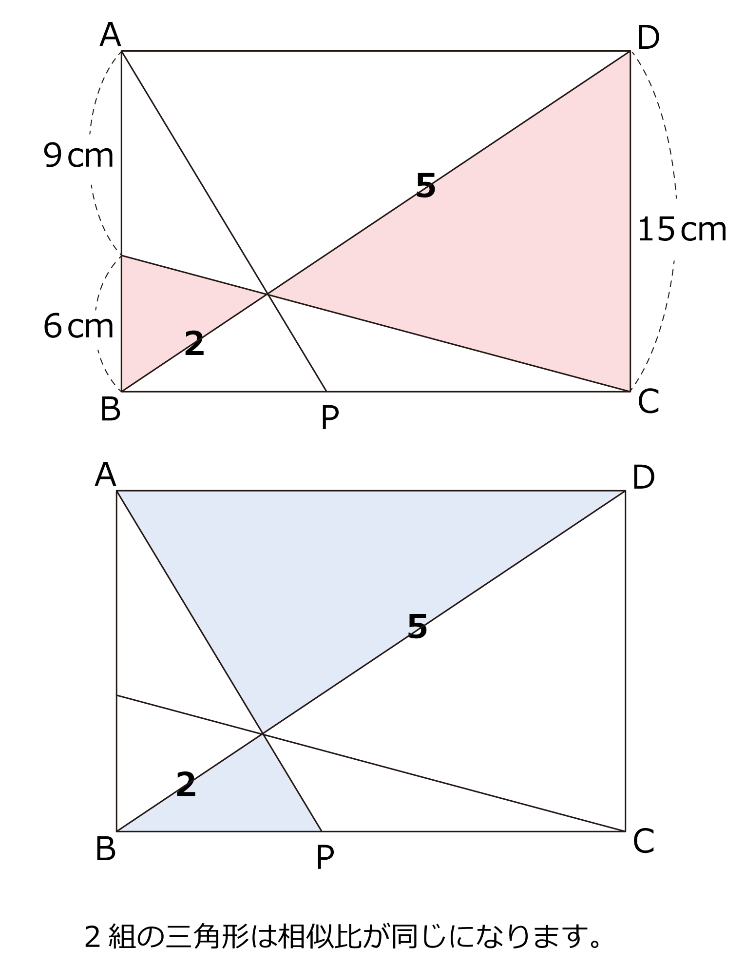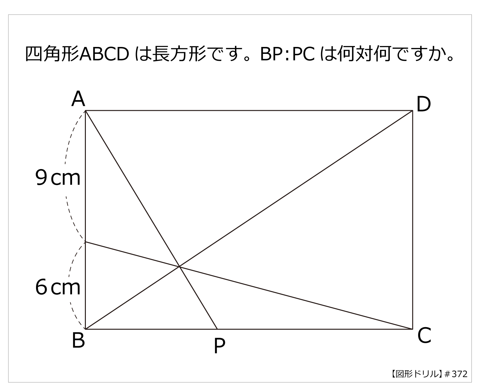 四角形ABCDは長方形です。BP:PCは何対何ですか。