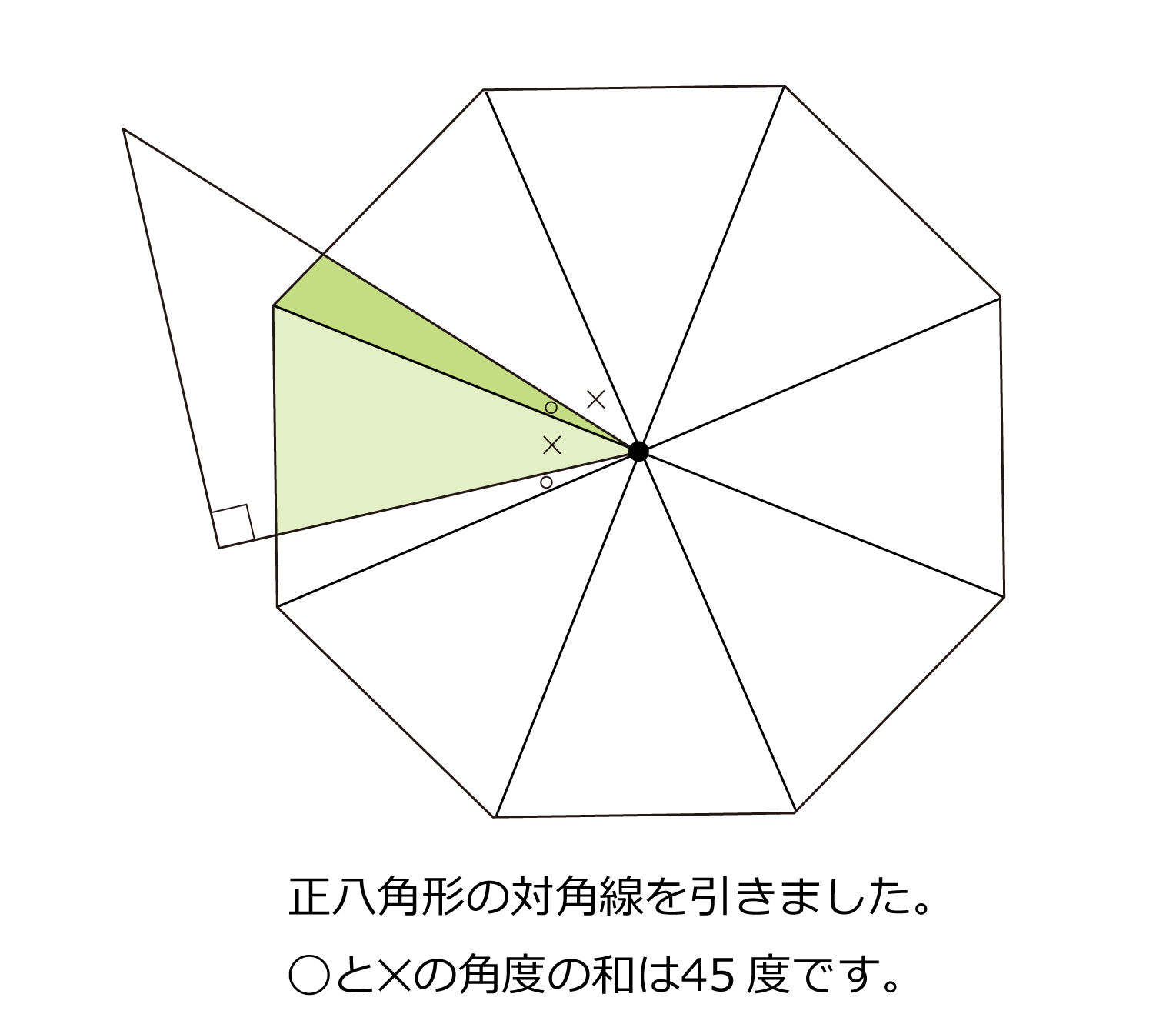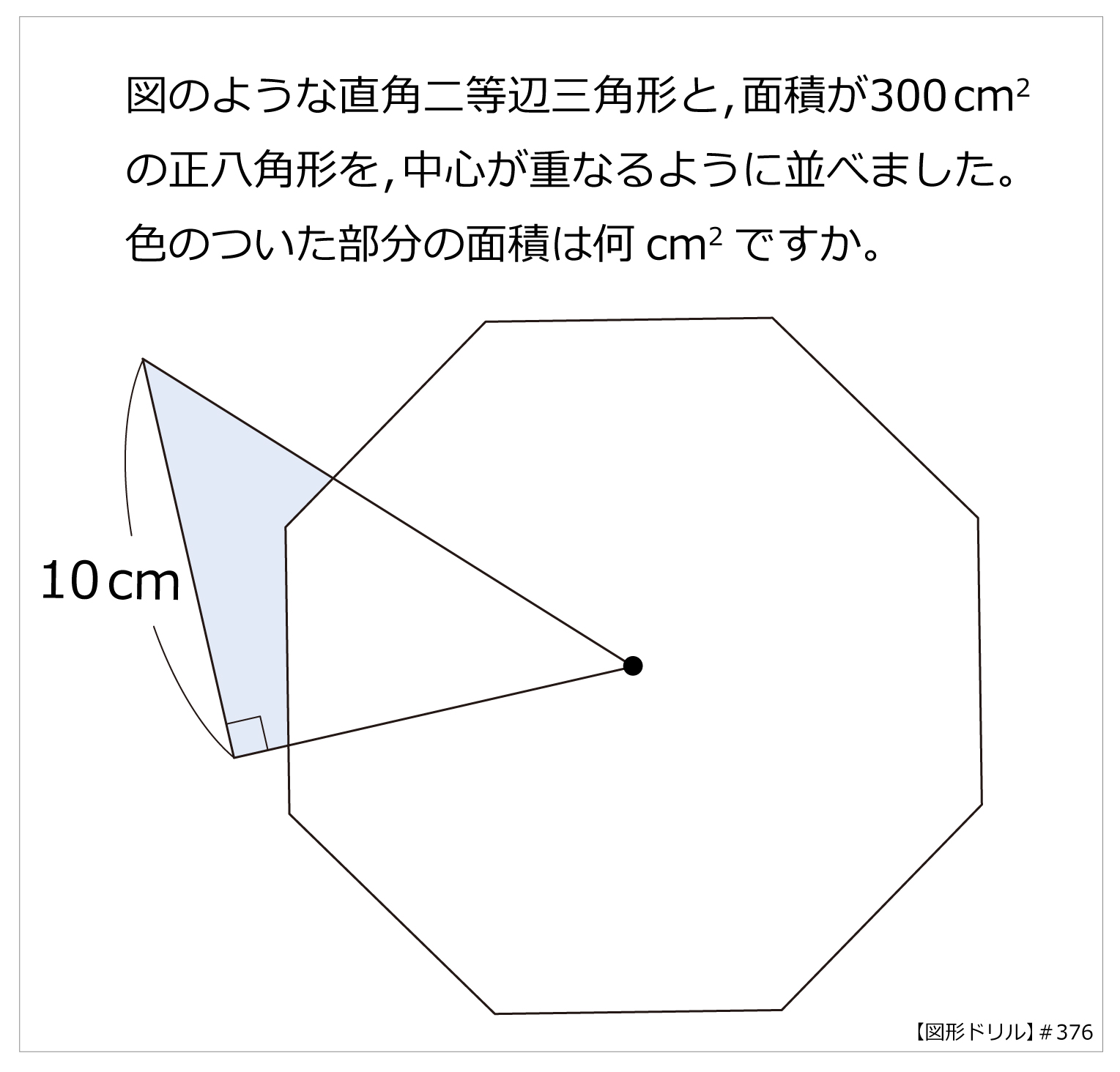 図のような直角二等辺三角形と,面積が300cm2の正八角形を,中心が重なるように並べました。色のついた部分の面積は何cm2ですか。