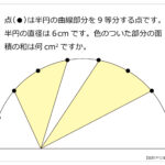 直径6 cmの半円を図のように並べました。色のついた部分の面積の和は何cm2ですか。