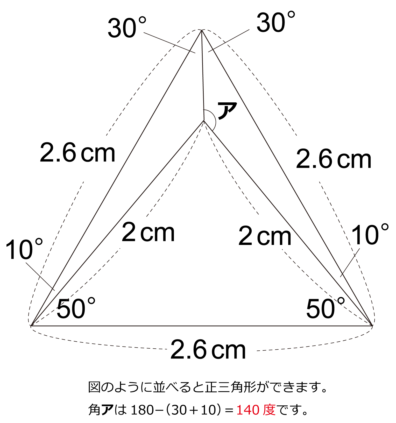 次の2つの三角形があります。角アの大きさを求めなさい。(問題文・出題条件など一部改訂しています)