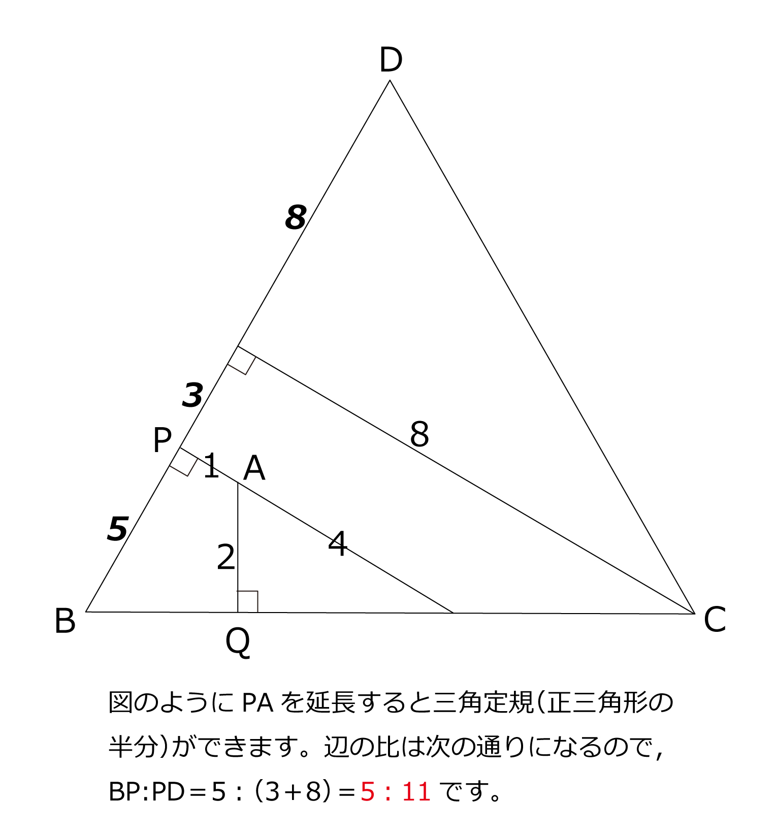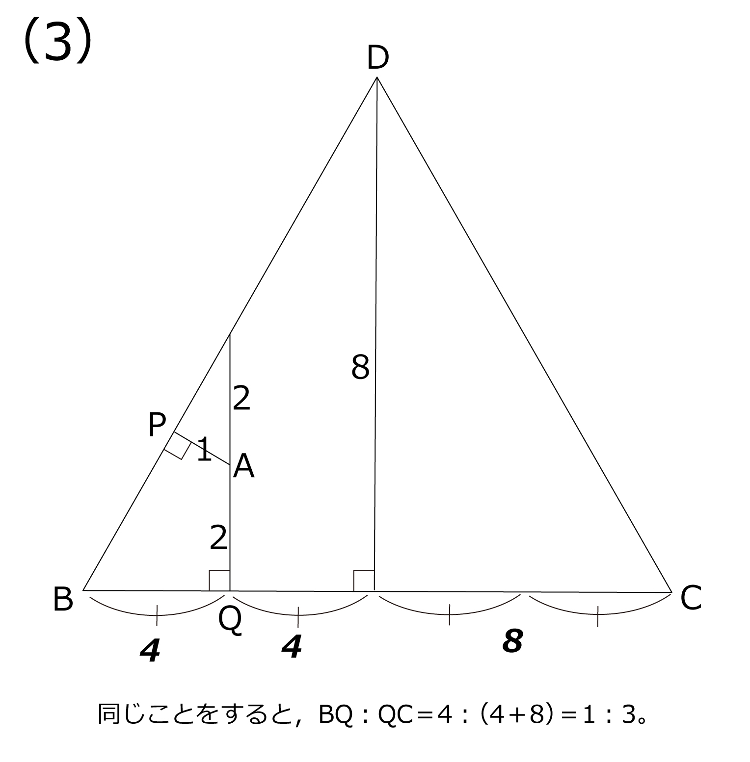 (2)(BPの長さ):(PDの長さ)を,最も簡単な整数の比で表しなさい。
