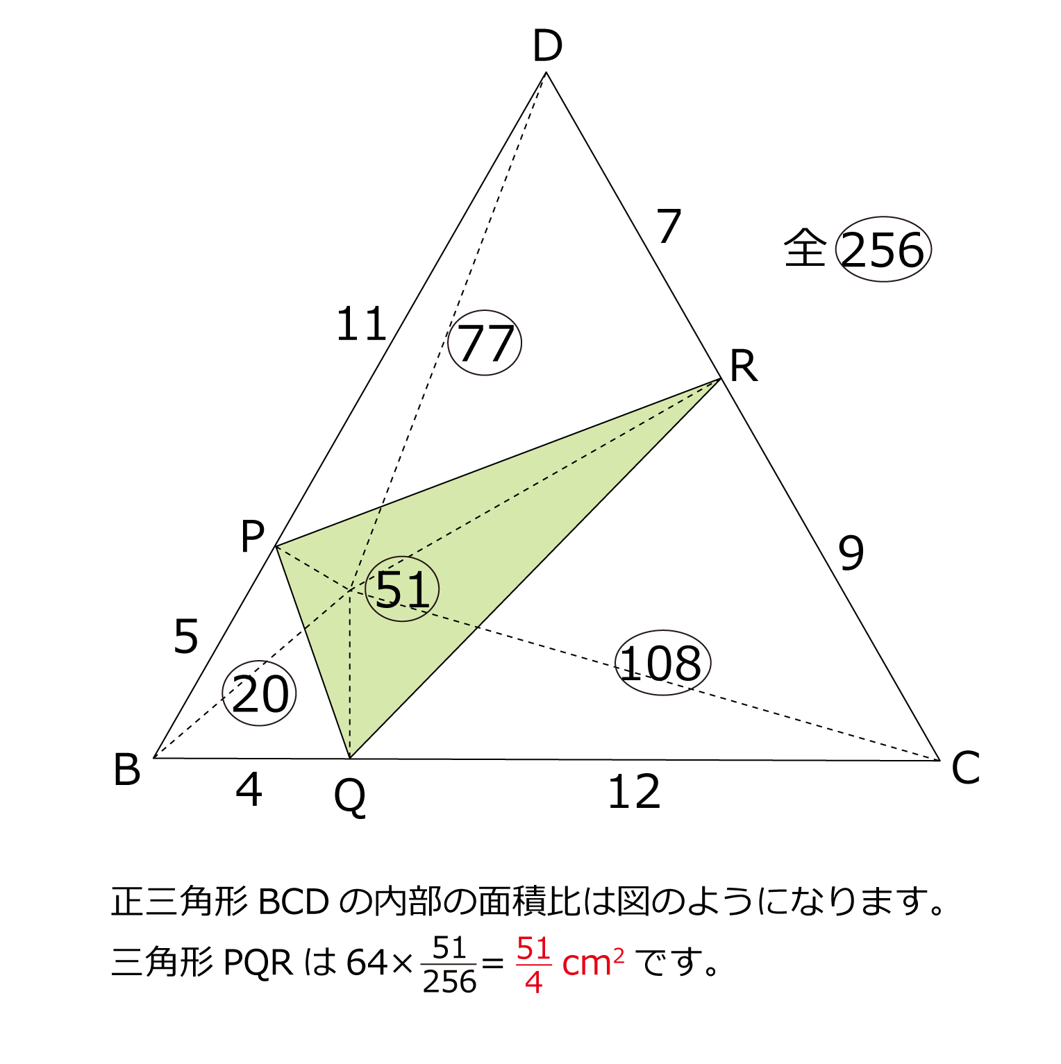 (3)三角形PQRの面積は何cm²ですか。