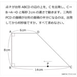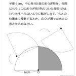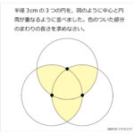 図のように,1辺6cmの正方形を4つの部分に分けました。色のついた部分の面積の和を求めなさい。