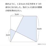 直線L上に直角三角形アと正方形イが並んでおり,アを矢印の方向に毎秒2cmの速さで平行移動させます。2つの図形の重なる部分の面積がイの面積の半分になるのは,出発してから何秒後ですか。すべて答えなさい。